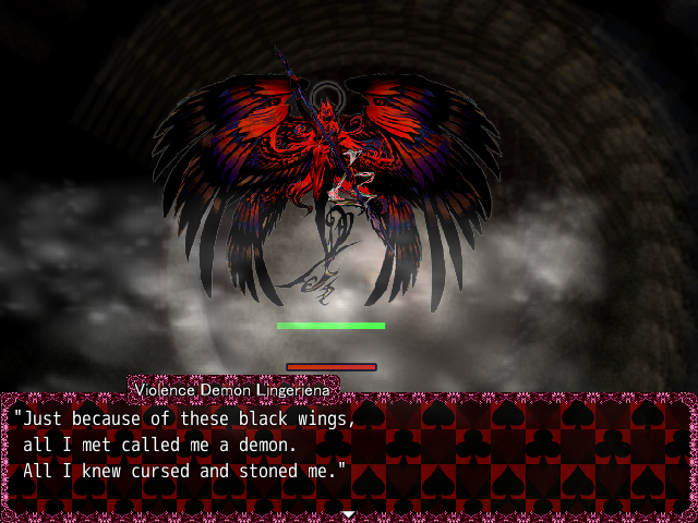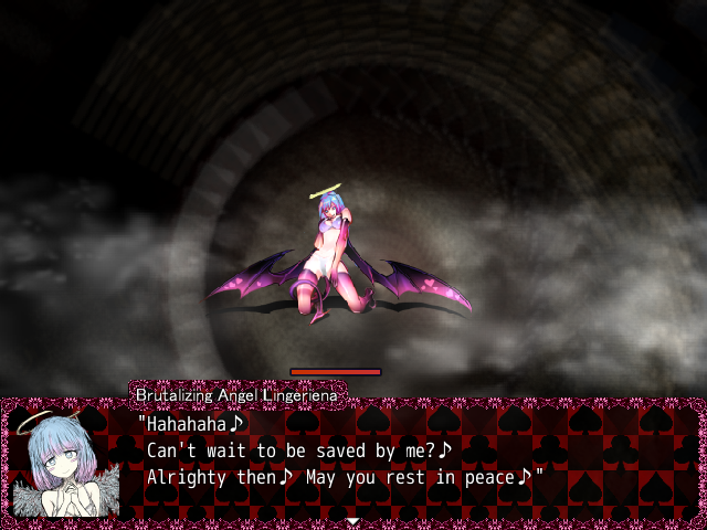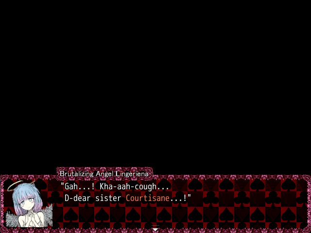 Brutalizing Angel Lingeriena is a character in BLACKSOULS 2 that appears at certain parts of the DLC3 part of the game. Even though she’s an angel, she’s a demon of violence just like Victoria, and she is also her younger sister.