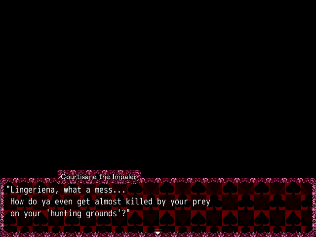 If you are in a covenant with Victoria, Lingeriena will say “Aren’t you of my dear elder sister’s household?”, saying how she would’ve saved you right away if you told her that and that now Victoria owes her one.