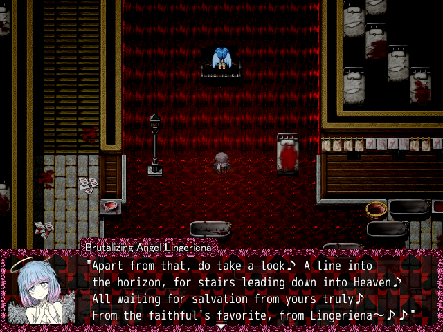 If Lingeriena is left alone and you defeated Florence but still haven’t killed, or saved her yet, then Lingeriena will kill her for you. Under certain conditions, you can see Lingeriena next to Florence’s bed which is full of blood, and she will talk about Florence and wonder how “that thing” was an angel in the first place.