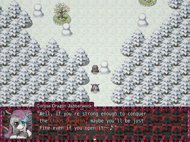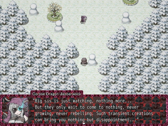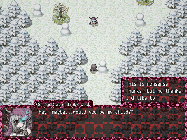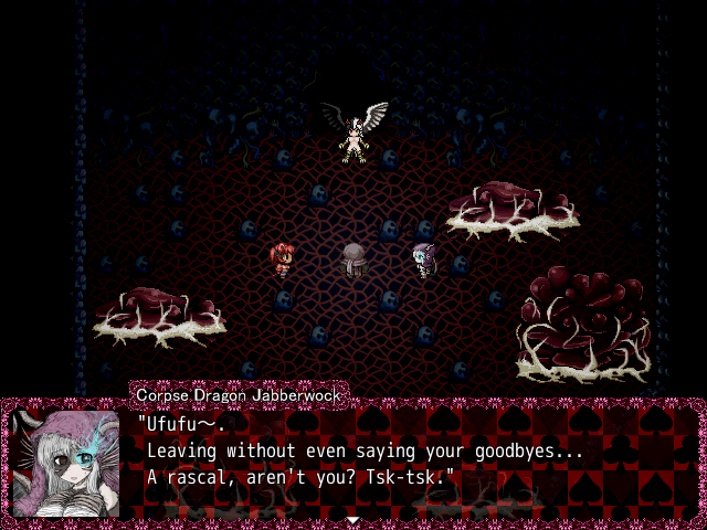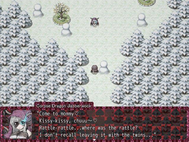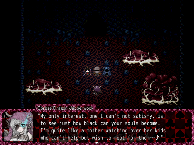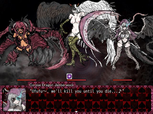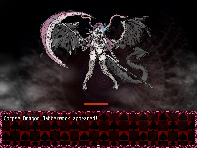 If you choose to kill Jabberwock you won’t be able to do it so easily, even though she’s technically a corpse. Trying to kill her will initiate a battle with her, and then you will see how she actually looks.