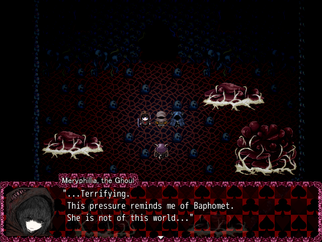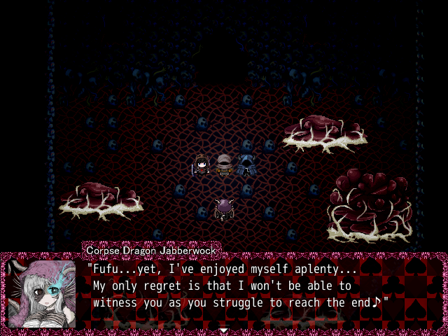 In Endings F and G, there’s a special fight with Jabberwock if you get cornered by her, Jubjub, and Bandersnatch. If you decide to stay with Meryphillia instead of leaving her to fight the three of them on her own, Jabberwock will start talking about a child starved for mother’s love during one part of the fight.