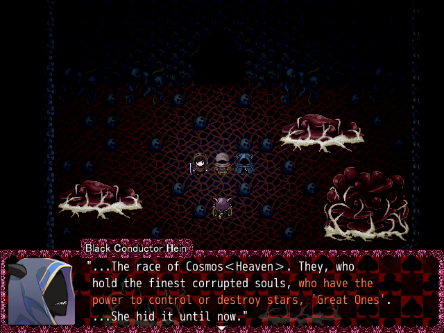 Meryphillia will say that Jabberwock reminds her of Baphomet and that she isn’t of this world. Hein will then say that Jabberwock belongs to the race of Cosmos<Heaven>, “they, who hold the finest corrupted souls, who have the power to control or destroy stars, Great Ones”.