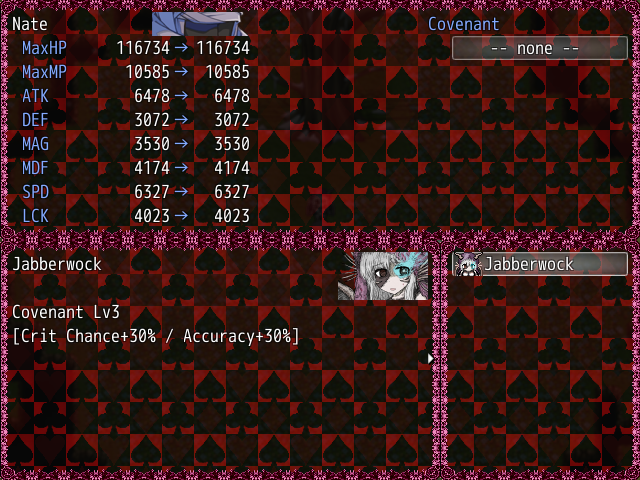 - Conditions: Make love to Jabberwock when you get her covenant to the 3rd level.