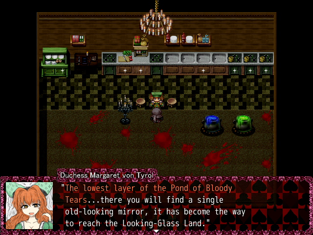 When you ask her how to get there exactly, she will go back and give you the Train Ticket to that place, and tell you to go to the lowest layer of the Pond of Bloody Tears, and that there’ll be a mirror that leads to the Looking-Glass land.