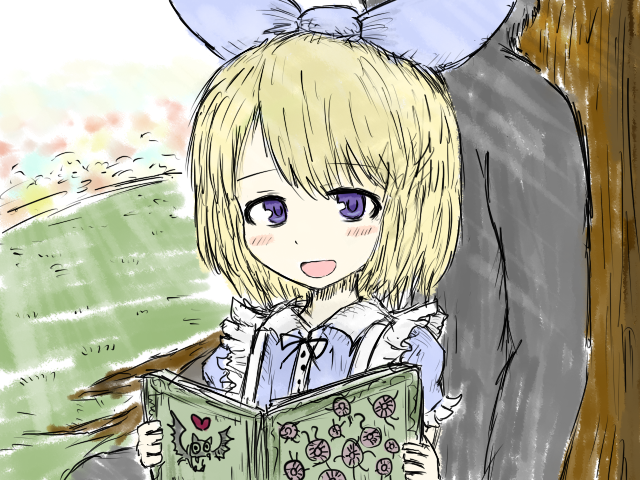 “Unmoved by rain, unwavering in the face of wind, feasting on rabbits’ flesh, where the tea party culminated, I was the bulwark of the library! It was the paradise for him and her and him. Howbeit, as a myriad of days went by, I lost to curiosity and sneaked a look inside… There, in the dark, I glimpsed upon a lump of flesh stained deep crimson. No doubt of that. The girl, Alice, lay dead….”