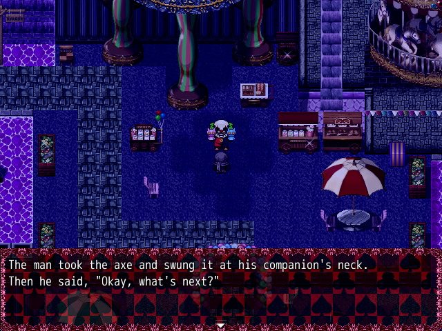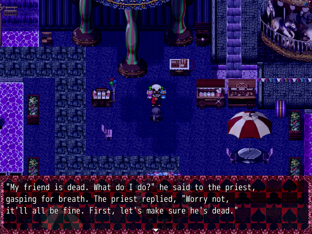 Joke Man is an NPC in BLACKSOULS 2 that you can find in Queensland. He’s a clown with two hand puppets who likes to tell jokes. He will tell you a joke each time you interact with him, all of his jokes are in the images below.