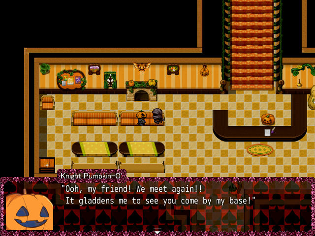 Knight Pumpkin-O appears in various different locations in the game. He’s one of the nicest characters you can encounter.