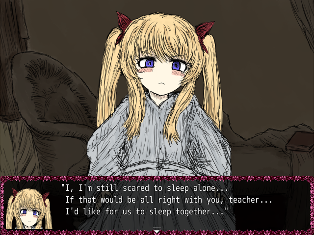 Lorina will thank you for taking care of her sister, and then she will reluctantly ask you if you want to sleep with her because she’s scared of sleeping alone. Choosing to sleep with her will initiate an NSFW scene with her.
