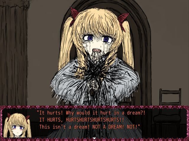 This plushie looks like the one Lorina is holding during the NSFW scene with her, and there’s also that scene where Lorina uses a knife on herself in the visual novel section of the game.