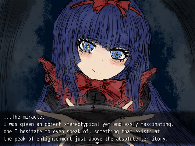 She will be there supporting you, but considering she’s one of the Great Ones it’s not so easy to trust her, so Grimm will ask why is she even supporting him in the first place. She will then go on about how The Crawling One, White Queen, and even Mary Sue believe “that a story lives through repetition”.