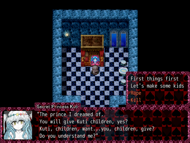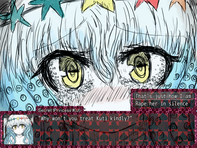 If you decide to talk to her, she’ll jumpscare you with her crying face. Kuti will be devastated that you decided to force her like this and that you weren’t the prince charming she was hoping for.