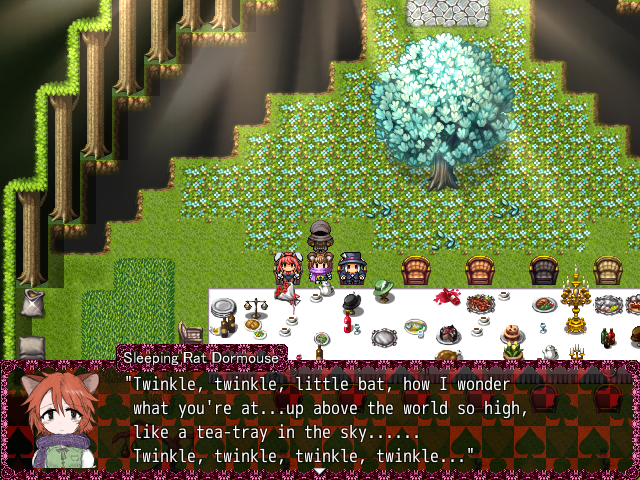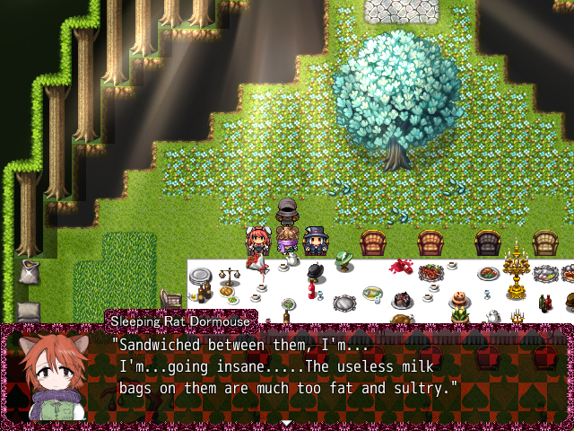 Sleeping Rat Dormouse is a character in BLACKSOULS 2 you can find at the Endless Tea Party area. She’s at the same table and sitting next to March Hare Haigha and Hatter Hatta. Dormouse is a sleepy rat-girl.