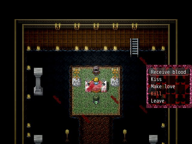 Then you will have certain dialogue options to choose from. You can either kiss him, make love, receive blood, or kill him.