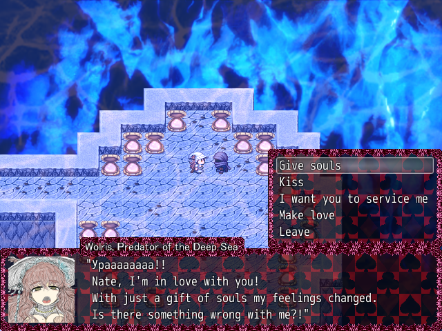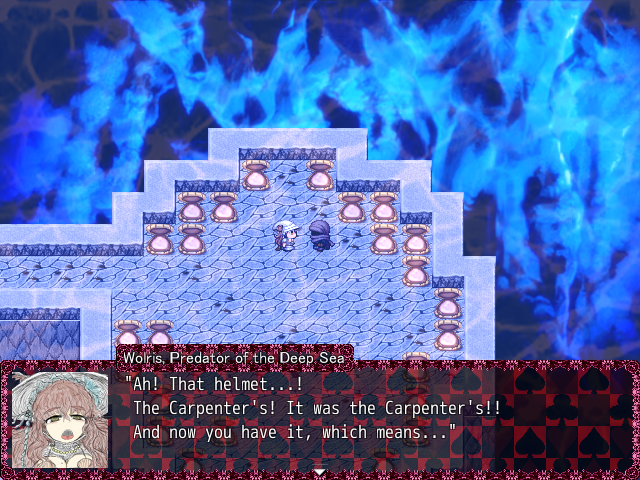 She’ll just be spacing out until you talk to her again, then she’ll start speaking nonsense, but from talking to her more and more she’ll reveal that she’s very sad, that she can’t stop eating, because the Carpenter still hasn’t returned from his journey to the bottom of the sea.